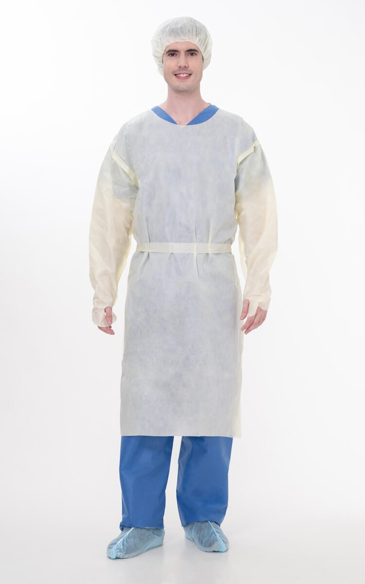 Full-coverage protective equipment for healthcare workers. Rated by AAMI PB70 standards for fluid barrier protection. Used in clinical settings where contamination risk exists. Available in Levels 1-4 based on protection requirements.